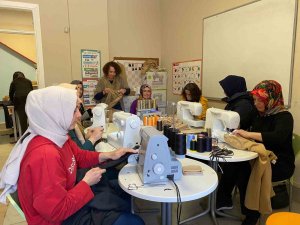 Kartal'da depremzedelere destek için bir araya gelen ev hanımları tek yürek olarak, depremzedeleri sıcak tutacak kıyafetler dikmeye başladı.