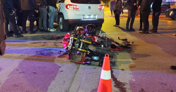 Kaza; Manavgat ilçesi Demokrasi Bulvarı'nda meydana geldi. Edinilen bilgiye göre, çevreyolu istikametine seyir halindeki Kadir Akbulut'un kullandığı 07 CEF 424 plakalı motosiklet, kavşak sisteminde Mithatpaşa Caddesine gitmekte olan Mehmet T. I.'nın kullandığı 07 LNC 55 plakalı otomobil ile çarpıştı. Kazayı gören vatandaşların 112 Acil Çağrı Merkezi'ne ihbarı ile olay yerine çok sayıda sağlık ve polis ekibi sevk edildi. Feci kazada motosiklet sürücüsü Kadir Akbulut, motosiklette yolcu olarak bulunan Melike D., ile otomobil sürücüsü Mehmet T. I. ve otomobilde yolcu olarak bulunan İsmehan I. yaralandı.