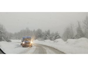 Kastamonu-Cide karayolunda özellikle yüksek kesimlerde kar yağışı etkili oluyor. Kar yağışı sebebiyle trafik polisleri sürücüleri uyararak, zincirsiz araçların geçişine izin vermiyor.