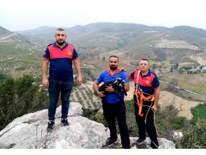 Osmaniye'nin Kadirli ilçesinde kayalıklarda mahsur kalan keçi yavrusu itfaiyenin çalışması sonucu kurtarıldı.