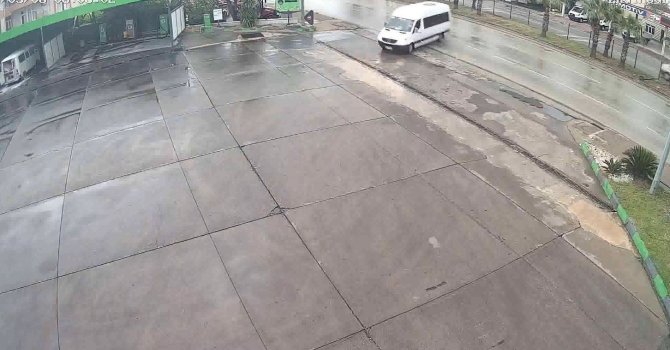 Antalya'nın Serik ilçesinde minibüs sürücüsünün direksiyon hakimiyetini kaybetmesi sonucu kayarak petrol istasyonu alanına daldı. Yürekleri ağızlara getiren olayda Minibüs son anda durmayı başarırken kaza anı iş yerinin güvenlik kamerası tarafından saniye saniye kaydedildi.