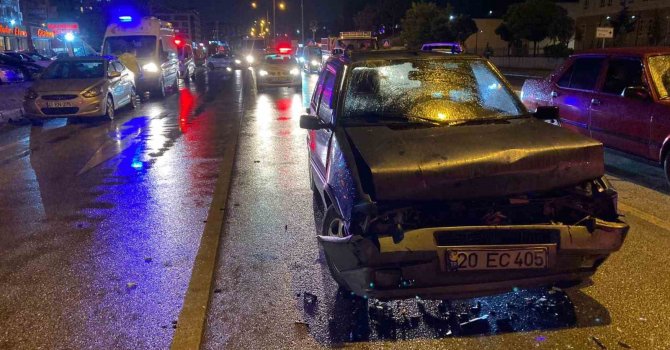 Burdur'da yağış nedeniyle kayganlaşan yolda duramayan otomobilin, kırmızı ışıkta bekleyen otomobile çarpması sonucu 3 kişi yaralandı.