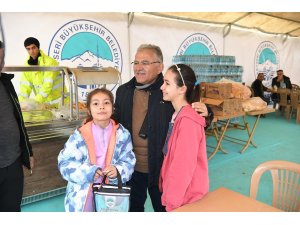 El emeği, göz nuru atkı ve berelerin depremzede çocukları ısıttığını söyleyen Kayseri Büyükşehir Belediye Başkanı Dr. Memduh Büyükkılıç, "Hayır için yapılan her iş, ona ihtiyacı olanı bekler. KAYMEK'lerimizde örülen atkı ve bereler depremzede yavrularımızın yüzlerinde tebessüm olarak iyilik ören kursiyerlerimize geri döndü" diye konuştu.