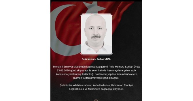 Alınan bilgiye göre, 23 Mart'ta Mersin İl Emniyet Müdürlüğü'nde görevli polis memuru Serkan Ünal, ekip aracıyla kaza geçirdi. Ağır yaralanan Ünal, hastaneye kaldırılarak tedavi altına alındı. Hastanede yapılan tüm müdahalelere rağmen Ünal, şehit oldu. Şehit polis memuru için Mersin İl Emniyet Müdürlüğü'nde tören düzenlendiği, törenin ardından naaşının toprağa verilmek üzere memleketi Kırıkkale'ye uğurlandığı bildirdi.