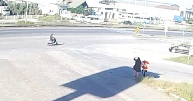 Antalya'nın Manavgat ilçesinde otomobilin elektrikli bisikletle çarpışması sonucu meydana gelen kazada 1 kişi yaralandı. Göz göre göre gelen kaza anı güvenlik kamerasına yansıdı.