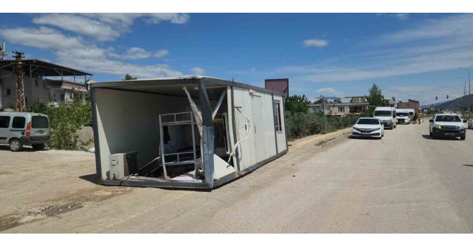 Hatay'da tır ile servis minibüsünün çarpışması sonucu yaşanan kazada tırda yüklü konteyner yola devrildi.