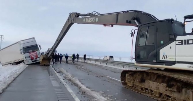 Deprem bölgesinde arama kurtarma çalışmalarına katılan Manisa Büyükşehir Belediyesi ve MASKİ Genel Müdürlüğü ekipleri, olumsuz hava şartları nedeniyle Konya'da yoldan çıkan ayni yardım tırını da kurtararak yoluna devam etmesini sağladı.