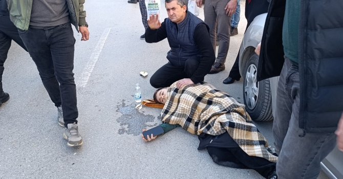 Antalya'da seyir halindeki otomobile arkadan çarpan 13 yaşındaki elektrikli bisiklet sürücüsü yaralandı. Vatandaşlar küçük çocuğun üzerini üşümemesi için işyerinden getirdikleri battaniyeyi örttüler.