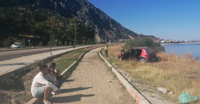 Isparta'nın Eğirdir ilçesinde otomobilin direksiyon hakimiyetinin kaybedilmesi sonucu meydana gelen trafik kazasında, otomobil sürücüsü ve eşi sarılarak birbirini teselli etti.