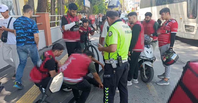 Antalya'nın Manavgat ilçesinde iki minibüsün arasından geçmek isteyen moto kurye, yavaşlayan minibüse arkadan çarptı. Kazada yaralanan olmazken, olay yerine çok sayıda moto kurye geldi.