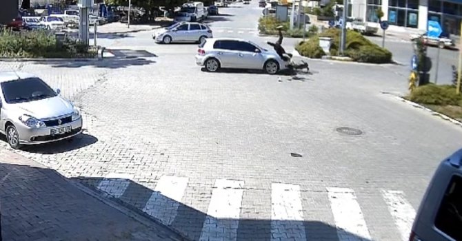 Öte yandan kaza anı, çevredeki bir iş yerinin güvenlik kamerasına saniye saniye yansıdı. Görüntülerde, cadde üzerinde hızla seyir halinde olan motosikletin otomobille çarpıştığı ve sürücünün savrularak yere düşmesi ve ardından vatandaşların yaralıyı güneşten şemsiye ile koruması yer aldı.