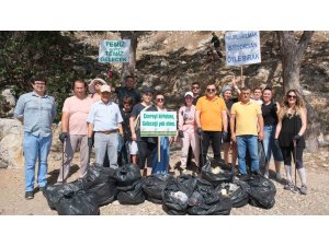 Kemer Belediyesi Temizlik İşleri Müdürlüğü ve İklim Değişikliği ve Sıfır Atık Müdürlüğü ekipleri ve Kemer'de yaşayan yabancı uyruklu kadınlar, Beldibi Mahallesi Saklı Koy ve ormanlık alanda temizlik yaptı.