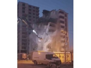 Depremin vurduğu Hatay'da iş makinasının müdahalesiyle 10 katlı binanın yarısının yıkıldığı, yarısının ayakta kaldığı anlar kameralara yansıdı.