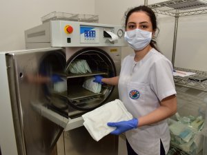 Belediye Sağlık Merkezi’nde maskeler steril hale getiriliyor