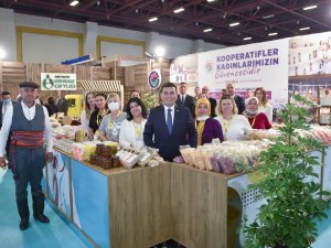 Kepez Belediyesi, standında Kadın Kooperatifleri Destek Paketi Projesi kapsamında kurulmalarına öncülük ettiği kooperatiflere de yer verdi. Kepez Kadın Kooperatifleri, ‘Kooperatifler Kadınlarımızın Güvencesidir’ yazısının bulunduğu dekorun önünde, ürettikleri yöresel ürünleri ziyaretçilerle buluşturuyor. Kepez Belediyesi standını ziyaret edenler, yöresel lezzetlerden pekmeze, baldan tahine, meyve sularından nar ekşisine, bakliyattan meyve ve sebze kurularına, yaş pastadan unlu mamul çeşitlerine, turşudan salçaya kadar doğal yöntemlerle ve sağlıklı koşullarda imal edilen ürünlerin tadına bakma imkânı buluyor.