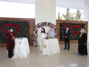 Zemine yapıştırılan ‘Sağlığınız için mesafenizi koruyunuz’ uyarı yazılarıyla da nikah memuru, gelin ve damat, şahitler arasında sosyal mesafe kurallarına uyulması sağlanıyor. Kepez Belediyesi Evlendirme Dairesi’nde, genel kullanım alanları da sürekli dezenfekte edilirken, nikahlar ise açık havada kıyılıyor. Kepez Belediye Başkanı Hakan Tütüncü’de, sosyal mesafeli nikah merasimlerine katılarak çiftlerin mutluluklarına ortak oluyor. Tütüncü, nikah memuru cübbesini giyerek, en güzel ‘evet’ kelimesiyle şahitler ve davetliler huzurunda hayatlarını birleştiren çiftleri bu özel günlerinde yalnız bırakmıyor. Haber Merkezi