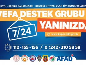 İçişleri Bakanlığı tarafından 65 yaş ve üstü ile kronik rahatsızlığı olanlara “Sokağa çıkma sınırlaması” getirilince, yayınlanan genelge doğrultusunda 81 ilde ‘Vefa Sosyal Destek Grubu’ oluşturuldu. Valilikler bünyesinde, İl Emniyet Müdürlüğü, jandarma, AFAD, Kızılay ve yerel yönetimler den oluşturulan Vefa Sosyal Destek Grubu, 65 yaş ve üstü, kronik rahatsızlığı olan vatandaşların ihtiyaçlarının giderilmesini koordineli bir şekilde üstlenecek. Kepez Belediyesi de ilçede bulunan 65 yaş ve üstü, kronik rahatsızlığı olan vatandaşların mağdur olmaması için gerekli önlemleri aldı.
