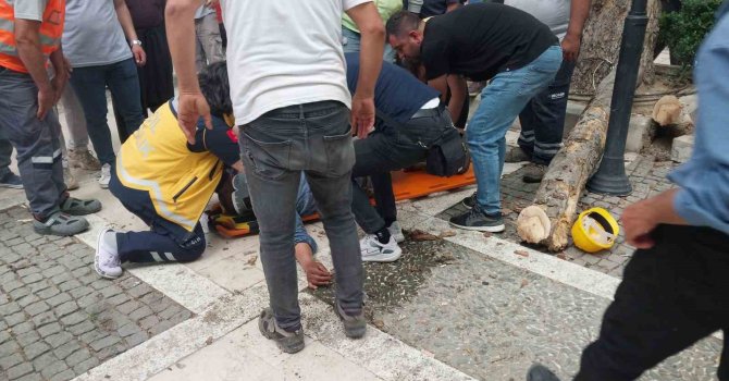Mersin'in Mut ilçesinde budama yaptığı kepçeden düşen belediye işçisi ağır yaralandı.