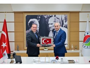 Başkan Kocagöz, KKTC Başbakan Yardımcısı Fikri Ataoğlu'na Türk bayrağı hediye etti. KKTC heyeti, makamdaki buluşmanın ardından Kepez Belediye Başkanı Mesut Kocagöz'ün rehberliğinde Kepez'deki hizmet çalışmalarını yerinde inceleyecek.