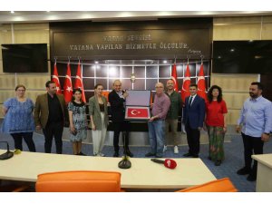 Ziyaret sonunda Başkan Kocagöz, Erasmus heyetine Türk bayrağı portresi hediye etti.