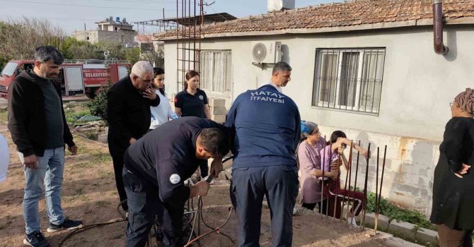 Hatay'da koluna inşaat demiri saplanan çocuk itfaiye ekipleri tarafından demir kesilerek kurtarıldı. Demirin kesilmesiyle rahat nefes alan çocuk tedavi altına alındı.