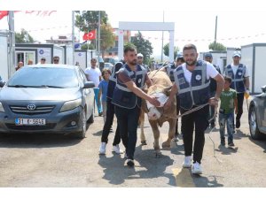 Depremin vurduğu Hatay'da bu yıl Kurban Bayramı buruk yaşanıyor. Vatandaşların bir nebze olsun bayram özlemini gidermek isteyen Erzurum Yakutiye Belediyesi, 2 adet kurbanlık boğanın kesimini gerçekleştirdi.