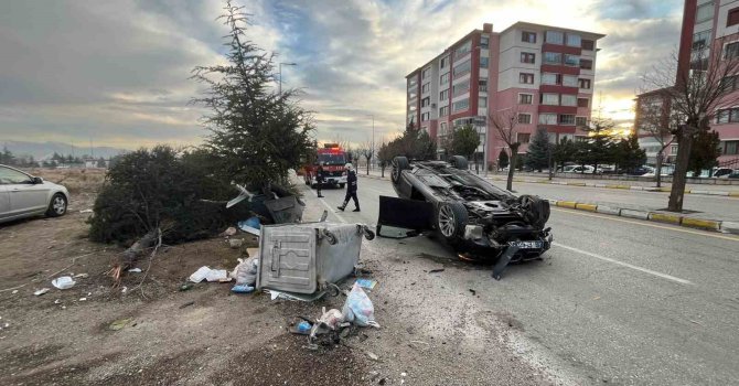Isparta'da kontrolden çıkan lüks otomobil ağaca çarpıp ters döndü. Sürücü hafif yaralandı.