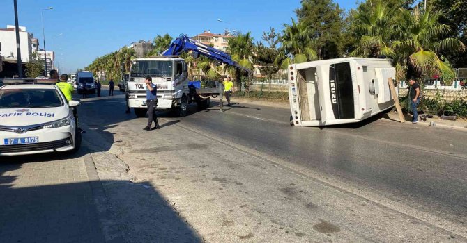 Antalya'nın Serik ilçesinde kontrolden çıkan midibüs yoldan çıkıp devrildi. O anlar bir iş yerinin güvenlik kamerası tarafından anbean kaydedildi.