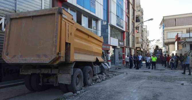 Alınan bilgiye göre, ilçede bulunan Numuneevler Camii'nin minaresi deprem nedeniyle hasar aldı. Yapılan incelemeler sonrasında minare için yıkım kararı verildi. Bugün halat bağlanan minare iş makinesi yardımı ile çekilerek yıkıldı. Ancak hesaplamalar tutmayınca minare yan yolda bulunan hafriyat kamyonunun üzerine devrildi. Hasar alan kamyonun sürüklenmesi sonucu ise bir binadaki 3 iş yeri zarar gördü. Yıkım sırasında bir kedi de ölümden kıl payı kurtuldu.