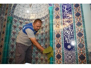 Konyaaltı Belediyesi, Kurban Bayramı öncesinde ibadethanelere gül suyu dökerek temizlik çalışması yaptı.
