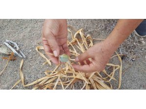 "Açtıkları zaman çiçekler kızgın kumların altına adeta gelin gibi oluyorlar. Gördüğünüz gibi dün burada 3 çiçek vardı bugün hepsi kurumuş. Bir günde aşırı sıcaklardan dolayı kuruyorlar. Bunun sonucu çiçekler tohuma dönüşemiyor. Bu yıl erken kurudu kum zambakları. Çiçek açtıkları zaman muhteşem oluyorlar ve sahile müthiş güzel bir koku yayılıyor. Yere düşen tohumlar ise yine sıcaklardan dolayı zarar görüyor. Tohumlar hafif nemli olmalıydı ancak baktığımız zaman tamamen içinin kuru olduğunu görüyoruz. En kısa sürede buradaki kum zambakları resmi kayıt altına alınarak kurumalarının engellenmesi için gerekli önlemlerin alınması gerekiyor. Bu konuda resmi kurumları defalarca yardıma çağırdım, çağırmaya da devam edeceğim."
