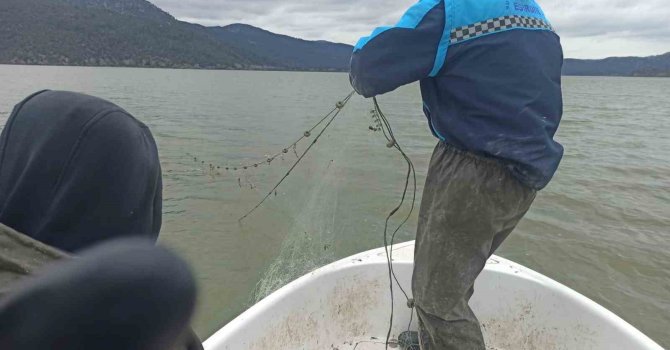 Isparta'nın Eğirdir ilçesindeki Kovada Gölü Milli Parkı'nda yapılan denetimlerde, yasak dönemde suya bırakılan yaklaşık 600 metre uzunluğunda uzatma ağı ele geçirilirken, ağdaki canlı balıklar tekrar göle bırakıldı.
