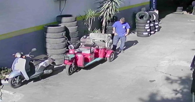 Adana'da çalıştığı lastikçiden çıkarılan bir kişi, tamire getirilen elektrikli bisikleti çaldı. O anlar güvenlik kameralarına yansıdı.