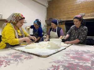Afyonkarahisar'ın Sandıklı ilçesinde köylü kadınlar depremzedeler için ekmek yapmaya başladı.