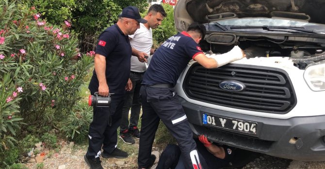 Kozan ilçesinde hafif ticari aracın motor bölümünden kedi sesi geldiğini fark edenler CANKUR ekiplerine haber verdi. Aracın başına gelen CANKUR ekibi kediyi motor kısmından kurtarmak için dakikalarca uğraştı.