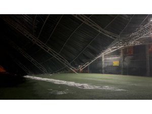 Adana'nın Kozan ilçesinde etkili olan şiddetli yağış ve dolu hasara yol açtı, halı sahanın çatısı çöktü.