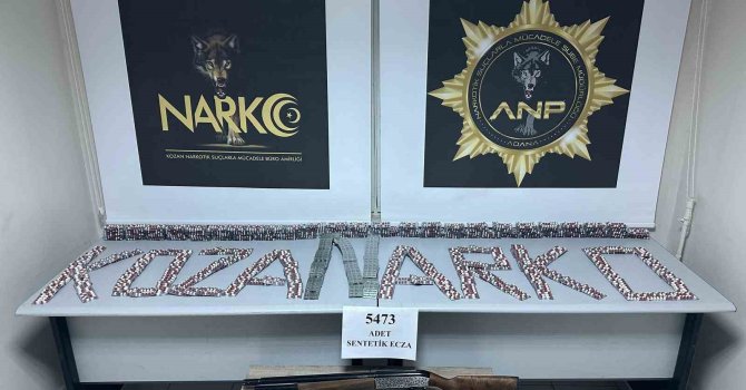 Kozan İlçe Emniyet Müdürlüğü ekipleri tarafından ilçede uyuşturucu kullanımını ve ticaretini engellemeye yönelik yürütülen çalışmalar çerçevesinde A.E.E.'nin uyuşturucu sattığı tespit edildi. Polis şüpheliyi teknik ve fiziki olarak takip etmeye başladı. Yapılan takip sonucu 10 Ocak günü şahıs Tufanpaşa Mahallesi Canoğlu Sokak'ta uyuşturucu satarken suçüstü yakalandı. Şüphelinin üstünde ve ikametinde yapılan aramalarda 5 bin 473 uyuşturucu hap, 1 pompalı av tüfeği, 1 ruhsatsız av tüfeği ve 1 kurusıkı tabanca ele geçirildi.