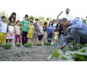 Çocukların çapa yapma, sulama, tohum ekme, fide dikme, herek hazırlama, yabani ot temizliği ve sebze hasadı gibi çiftçiliğin temel aşamalarını deneyimlediği etkinlikte börülce tohumu ile patlıcan fidesinin ekimi yapıldı.