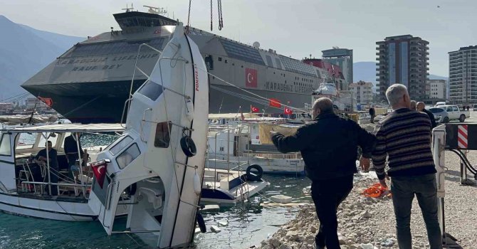 Hatay'da gece saatlerinde etkili olan fırtınanın etkisiyle alabora olan tekne, havanın aydınlanmasıyla sahibi tarafından vinçle kurtarıldı. Hobi amaçlı tekne satın aldığını ifade eden Halil Alpaslan, yaklaşık 400 bin TL'lik zararı olduğunu söyledi.
