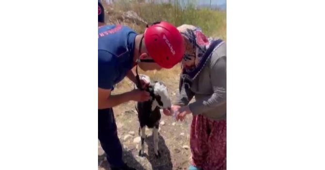 Kahramanmaraş'ta kanalizasyon kuyusuna düşen keçi itfaiye ekipleri tarafından kurtarıldı.