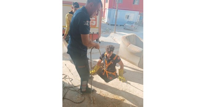 Hatay'da kuyuya düşen köpek itfaiye ekipleri tarafından kurtarıldı.
