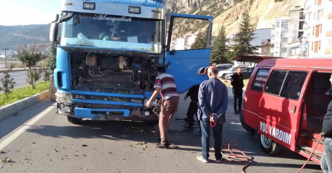 Isparta'nın Eğirdir ilçesinde palsan kasası yüklü tırın lastiğinin patlaması sonucu direksiyon hakimiyetini kaybederek karşı şeride geçti. Ekipler tarafından yol bir süre trafiğe kapatıldı.