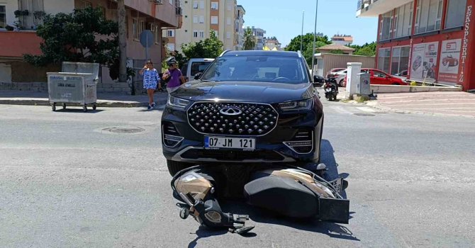 Manavgat'ta ara sokaktan caddeye çıkan cip, motosiklete çarptı. Cipin altında kalan motosikletin ve başını asfalta çarpan motosiklet sürücüsü ölümden döndü. Kaza anı ise güvenlik kamerasına saniye saniye yansıdı.
