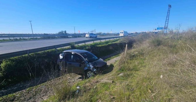 Antalya'nın Manavgat ilçesinde sürücüsünün direksiyon hakimiyetini kaybetmesi sonucu şarampole devrilen otomobilin sürücüsü yaralandı.