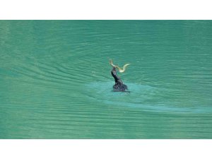 Yukarı Hisar Mahallesi yaya köprüsü yakınlarında Manavgat Irmağı'nda yaşanan mücadele kameralar tarafından saniye saniyesine kaydedildi. Manavgat ırmağında su yüzeyine çıkan balıkçılın, ağzındaki yılan balığıyla yaklaşık 5 dakika süren mücadelesinin sonunda her zaman olduğu gibi gülen taraf, yılan balığını midesine indiren balıkçıl oldu.
