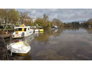 Manavgat Irmak kenarında yürüyüş yapan vatandaşlar, Kaledibi mevkiinde yat ve teknelerin bağlı bulunduğu bölgede su yüzeyinin siyah bir örtü ile kaplanmış olduğunu görmeleri, ırmağa petrol veya yağ bırakıldığı endişesini doğurdu.