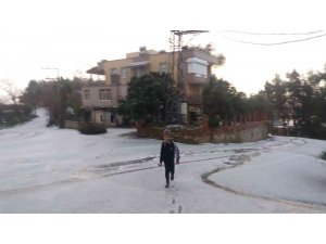 Antalya'nın Manavgat ilçesine bağlı Kızılağaç Mahallesinde sabah saatlerinde etkili olan dolu yağışı, mahalleyi adeta beyaz örtüyle kapladı.