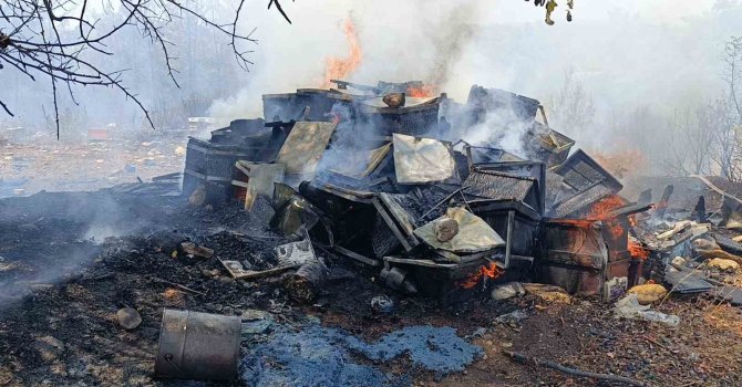 Antalya'nın Manavgat ilçesinde ormanlık alan içerisine dökülen çöp ve molozlardan çıktığı değerlendirilen orman yangınında 4 dönüm kızılçam ormanı yandı.