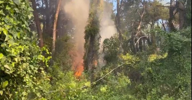 Antalya'nın Manavgat ilçesinde bulunan Sorgun Çamlığı'nda çıkan yangın ekiplerin hızlı müdahalesi sonucu kontrol altına alınırken yangında 3 dönüm arazi zarar gördü.