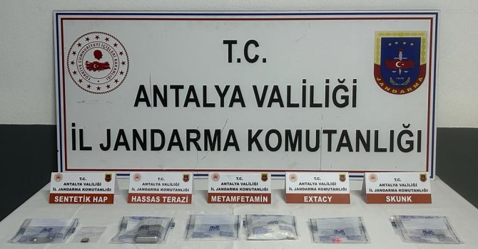 Antalya İl Jandarma Komutanlığı KOM. Şube Müdürlüğü ve Manavgat ilçe Jandarma Komutanlığı ekipleri, A.C.Ç. isimli şahsın Manavgat ilçesinde uyuşturucu madde ticareti yaptığı yönünde bilgi aldı. Manavgat Cumhuriyet Başsavcılığı talimatıyla şahsın adresinde ve aracında yapılan aramada, 300 gram metamfetamin, bir miktar uyuşturucu hap, skunk, esrar, esrar öğütme aparatı ve hassas terazi ele geçirildi.